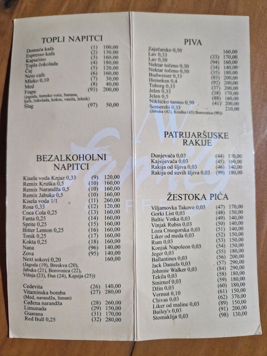 As you step inside Family Caffe NVN, you are greeted by a cozy ambiance adorned with the warm hues of wooden furnishings. The café is beautifully shaded by majestic lime trees, providing a refreshing escape from the summer heat. The inviting atmosphere is complemented by a friendly and attentive staff, ensuring you feel right at home from the moment you sit down.